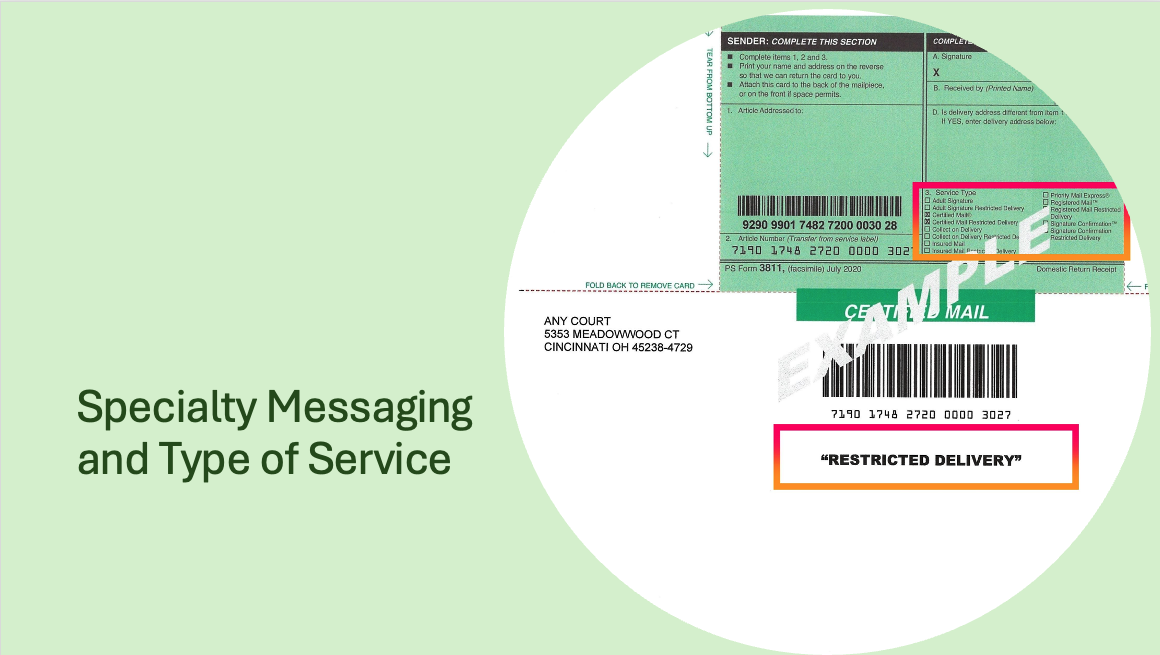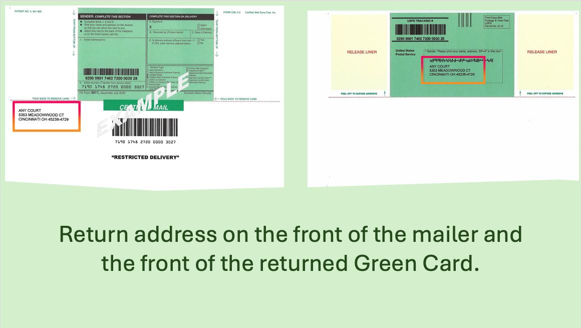 - ALL needed information for certified mailings are pre-printed on our mailers