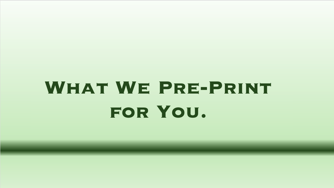 - Specialty Messaging and Logos pre-printed at your request.